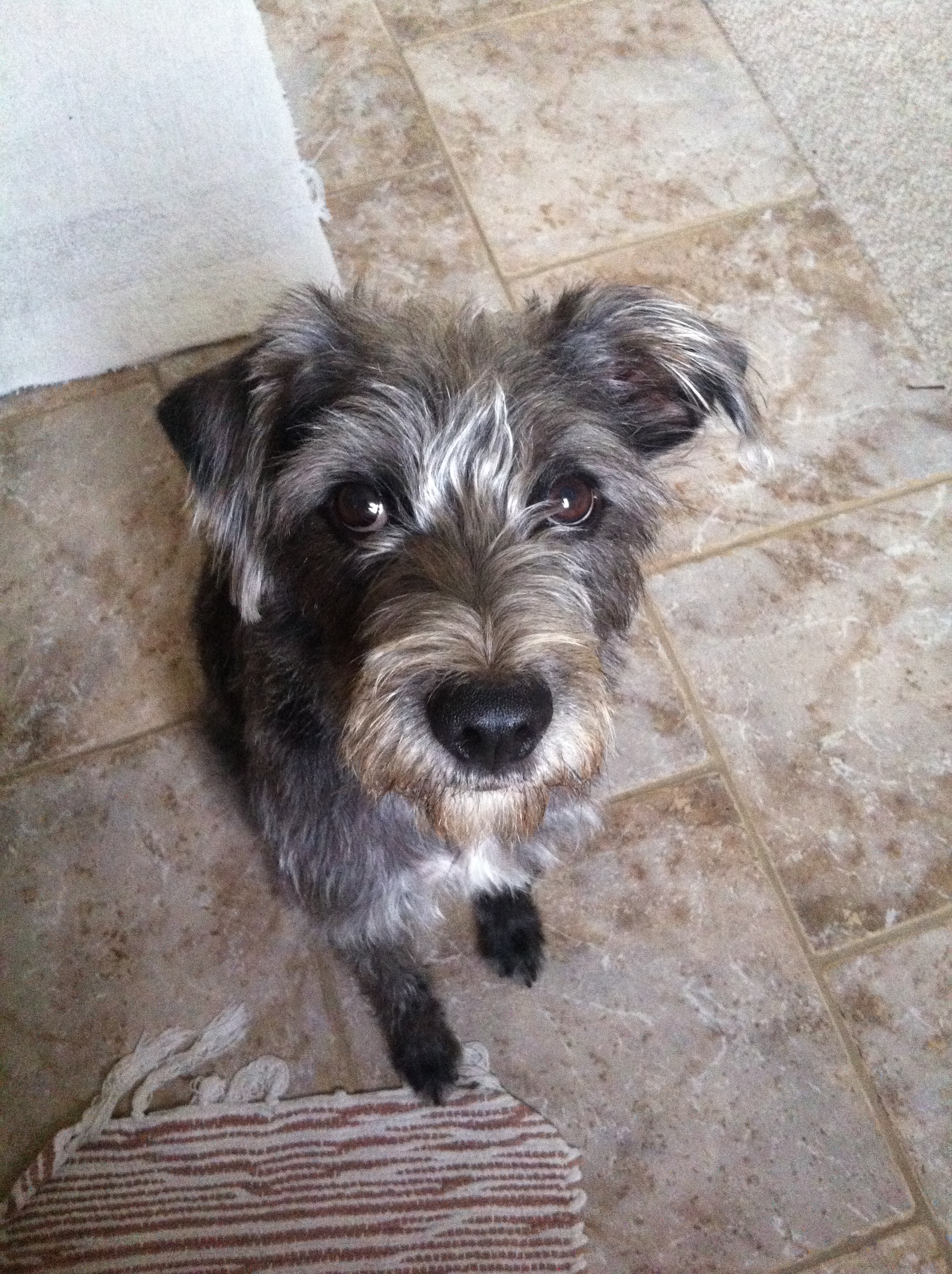 He looked just like Tramp from the Disney movie and was only around five months when he was found. His big, brown eyes begged to be taken home– way to go, photographer. And he was wire-haired which meant he didn’t shed. For me that factor alone was as important as having a dishwasher in the house. It has to have it or no deal.